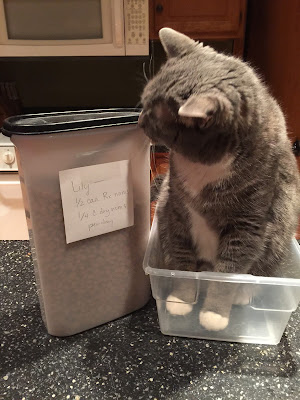 I'll have everything organized for him with complete instructions so I come back home to two healthy, well-fed, NON-TRAUMATIZED cats! :)